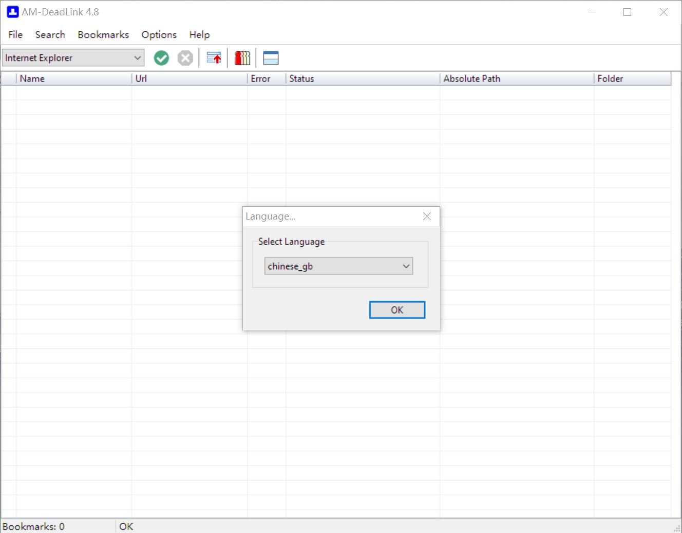 AM-DeadLink虽然是国外软件,但提供中文界面,启动软件后选择语言种类即可。