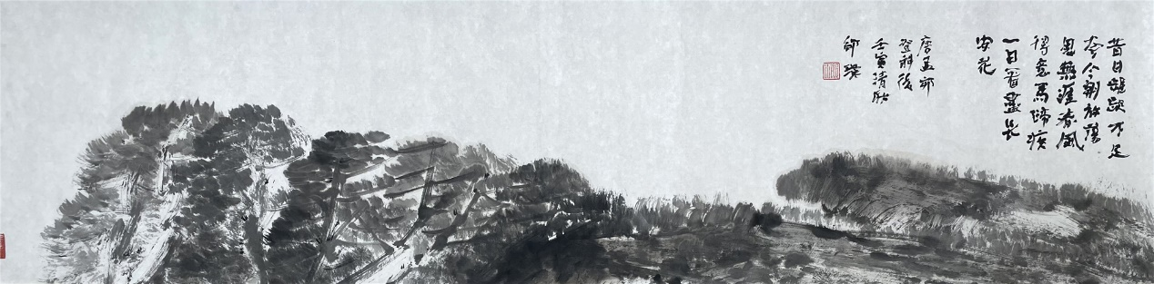 这片灰曾偶现在张仃的作品中,其夫人惊喜之余,誉之”银灰”。及至后来的探索者邵璞,以迷人的一片灰为其焦墨主调,大面积甚至整幅地呈现。著名画评家陈履生赞许说那是一种”灰调子”,”呈现特别的味道”。