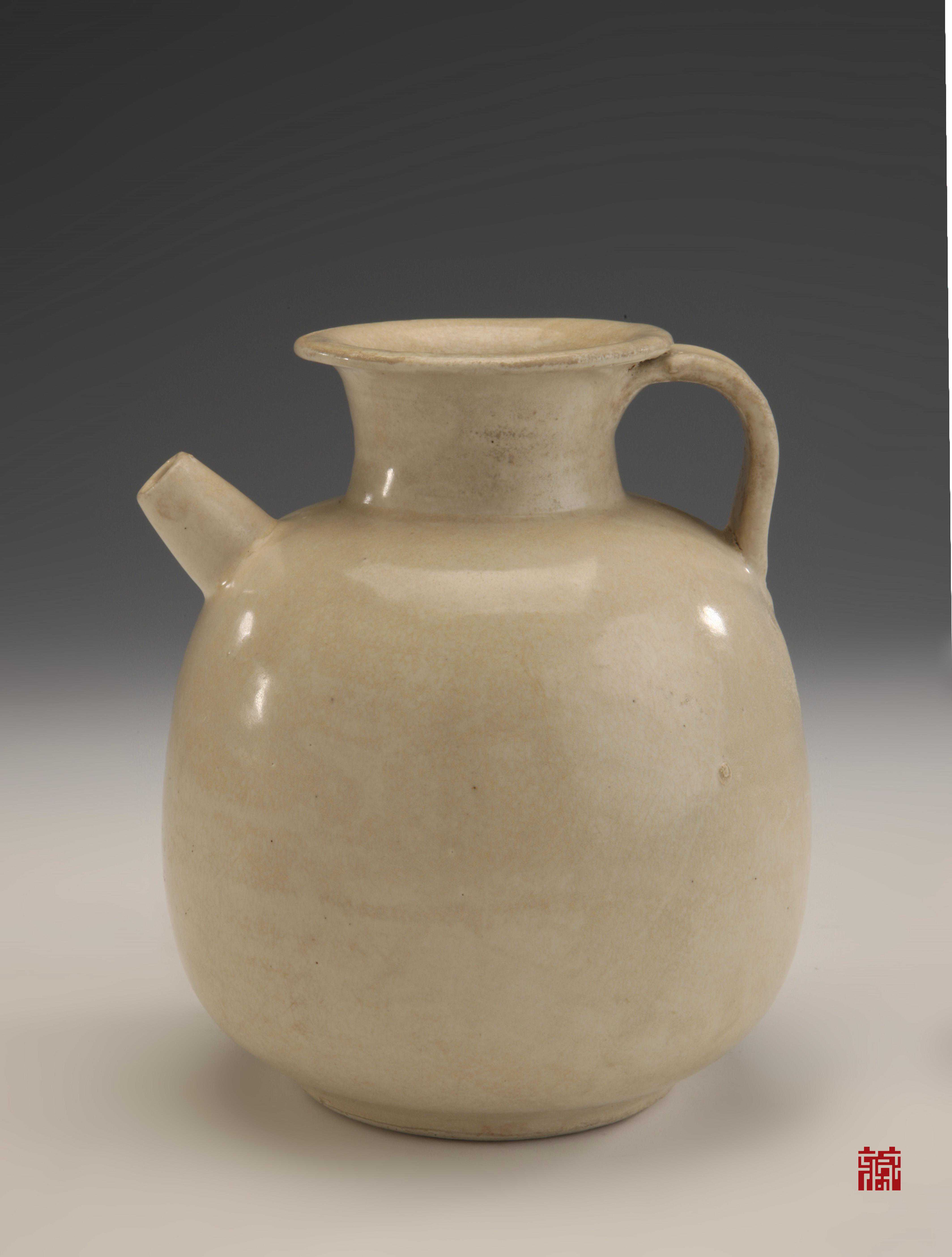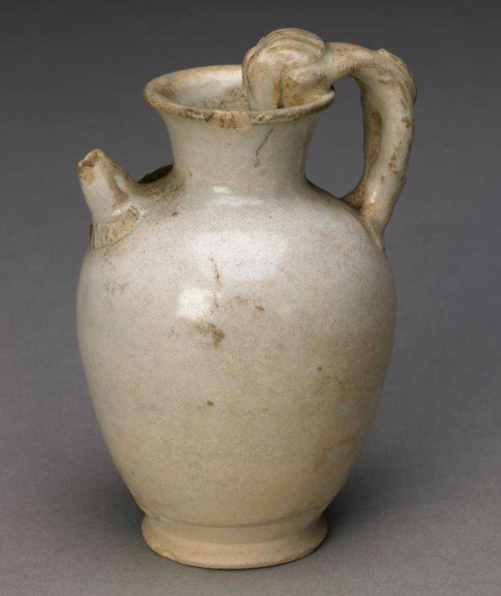 唐代白釉兽柄执壶