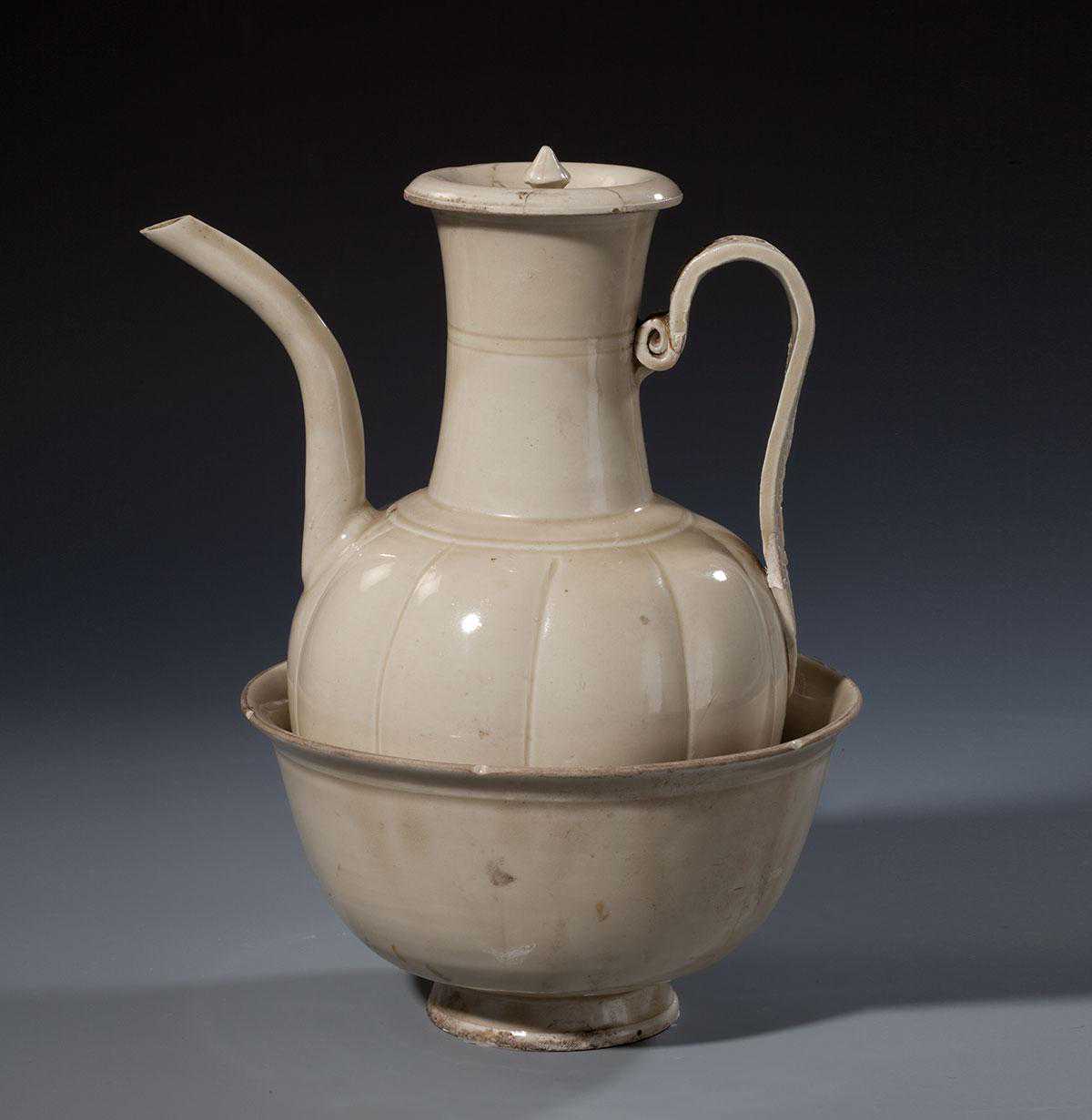 金代白釉瓜棱注壶、注碗