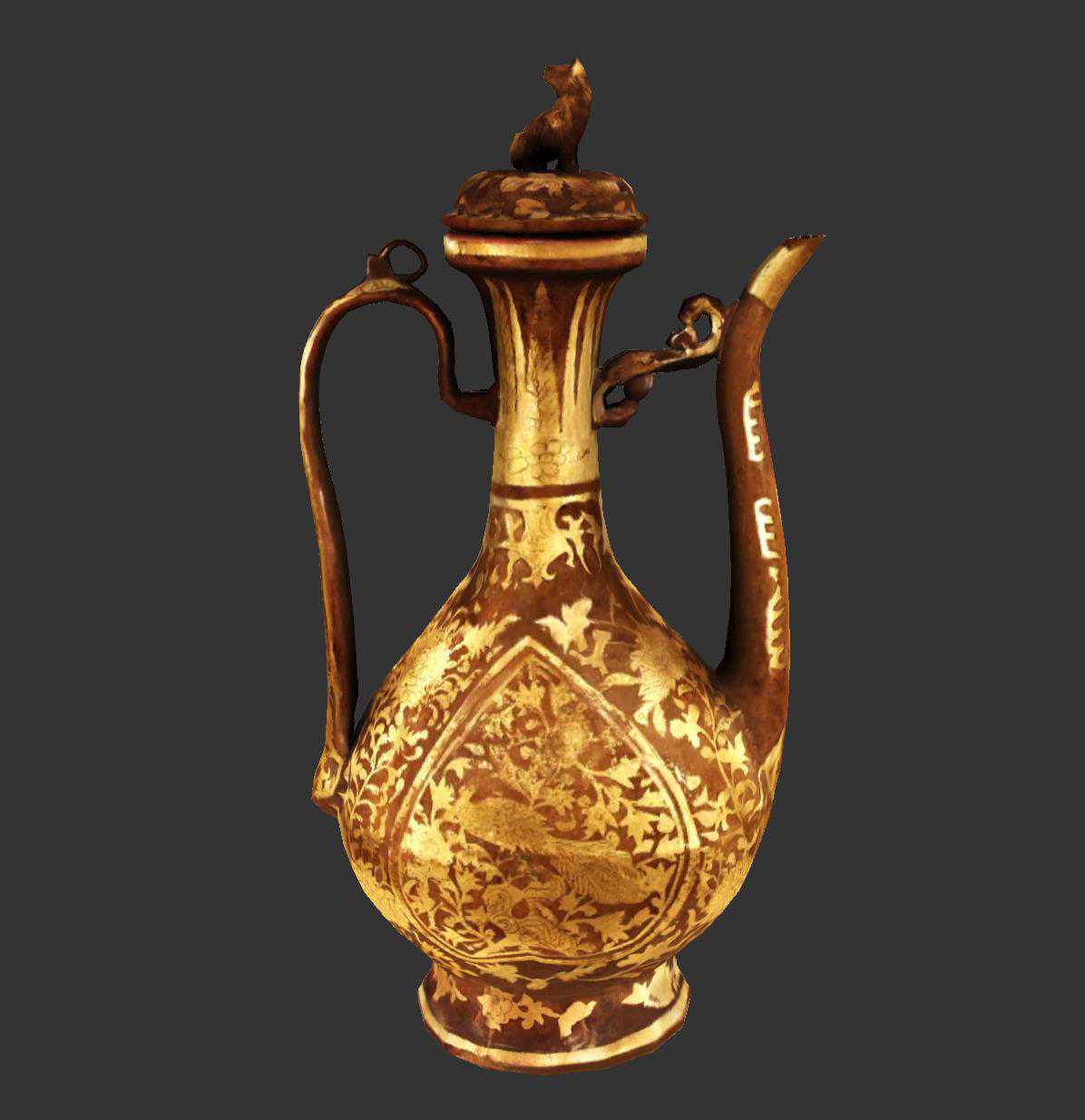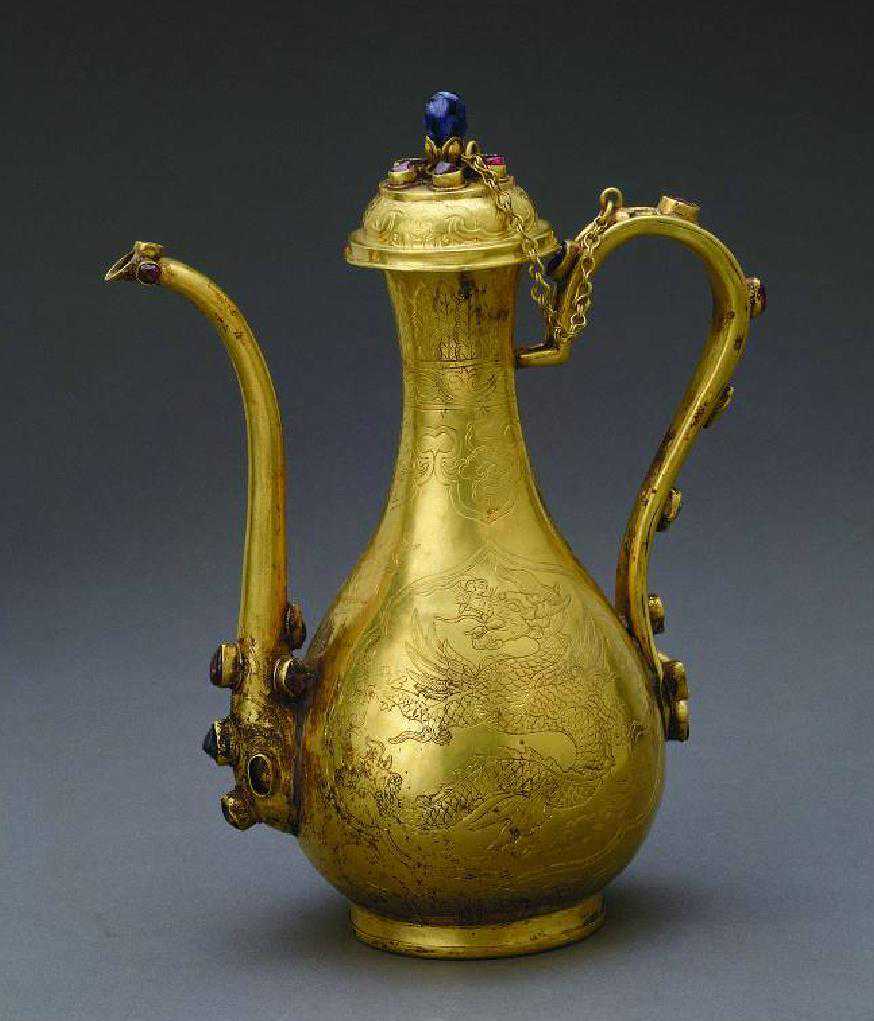 明代嵌宝石龙纹带盖金执壶