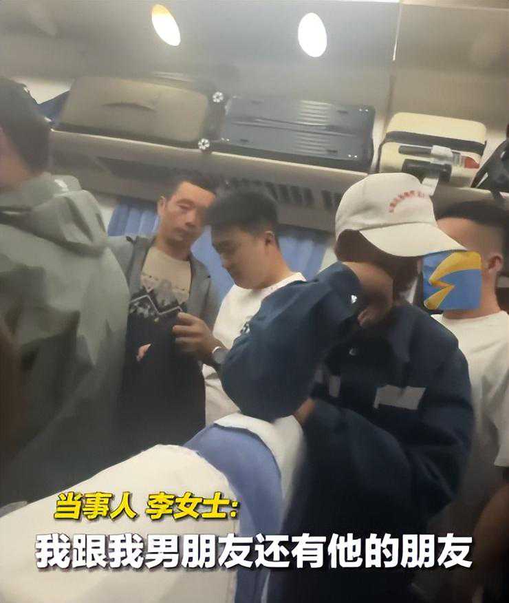 起初女子和男朋友还有一个朋友,就坐在自己的座位上。