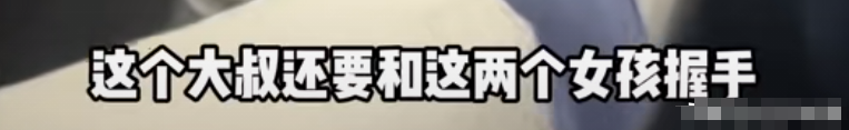 只见一喝醉酒的大叔,频频向两个女孩伸出“咸猪手”,想要握两个女孩的手,两个女孩很是害怕,但是一时也不知道该怎么解决。