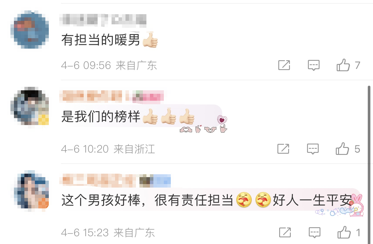 男孩的举动引网友夸奖道: