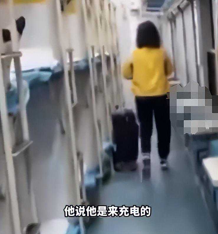 但是男子还振振有词的回复,只是在这边充个电而已,随即就起身坐到了过道上。