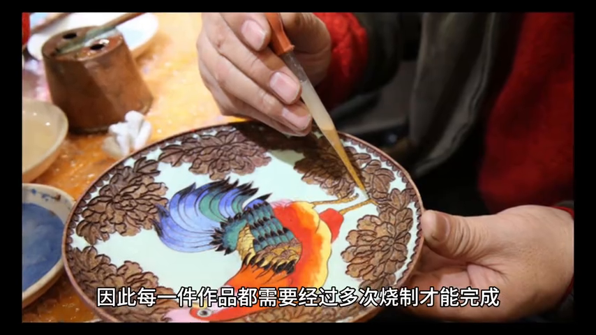 →3、绘制:在底釉上使用特殊的珐琅彩料进行精细的绘制,这需要高超的绘画技巧和耐心。