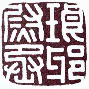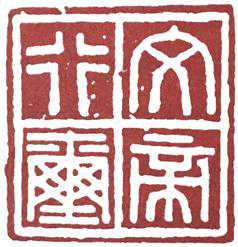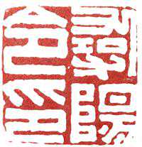 分三行,2—2—1分布,印字独作一行,横竖均衡,线条匀称,应注意所有字的纵横比例。