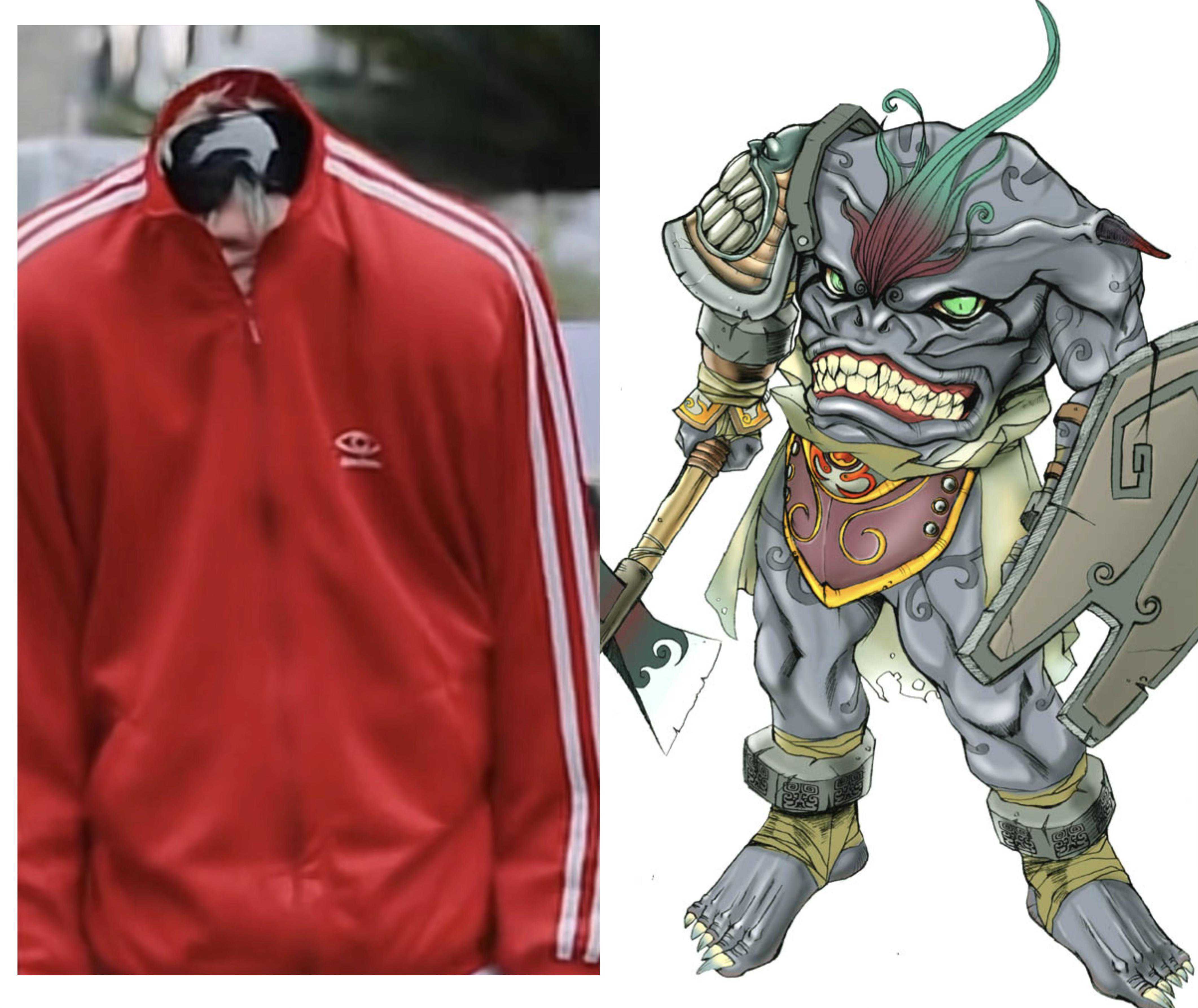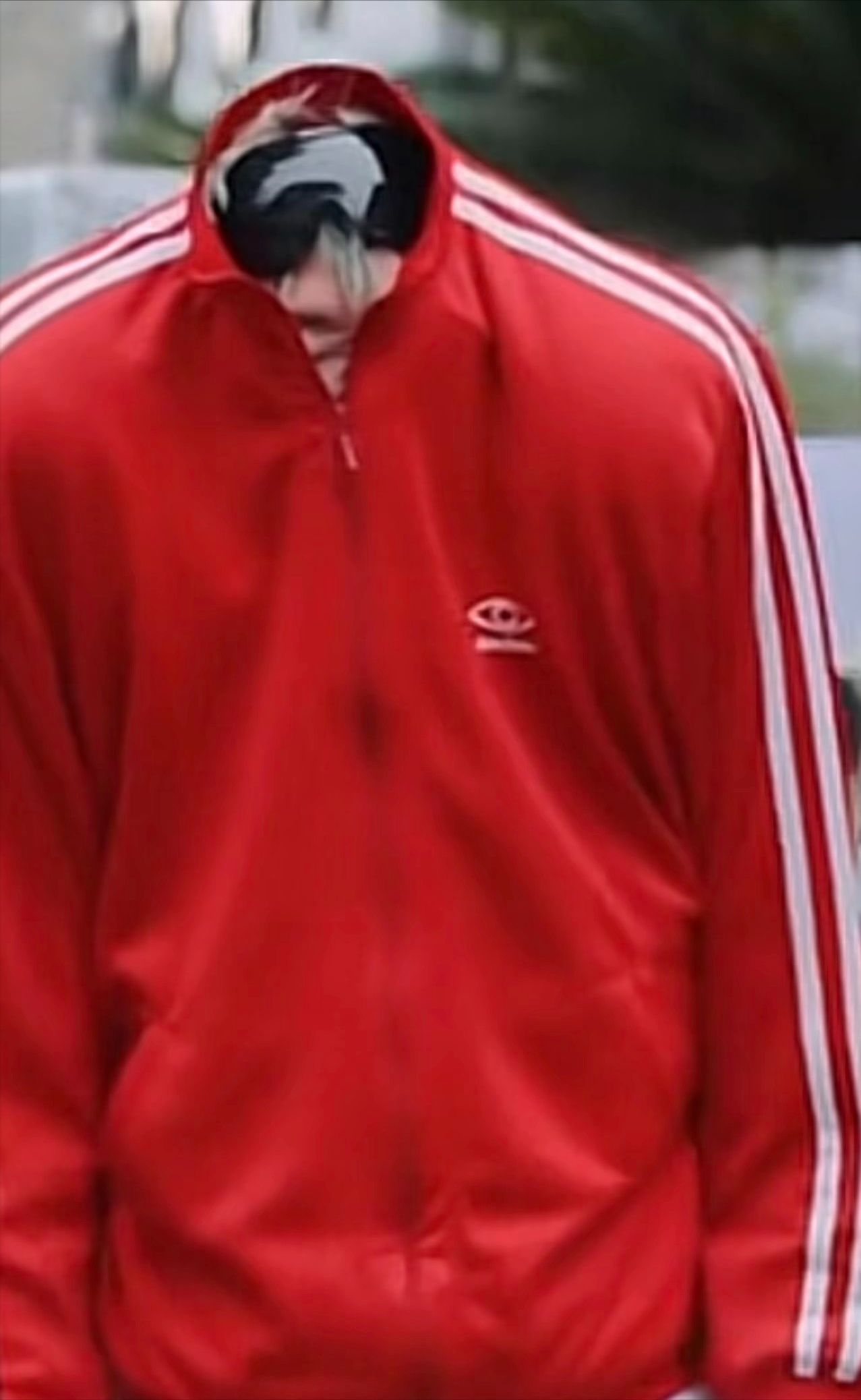 这衣服单看没毛病,无非就是垫肩夸张了一些,但是这衣服怎么就穿在了脑袋上?