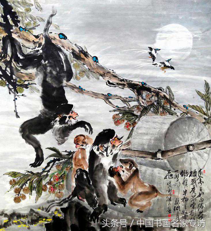 在活泼机灵、挤眉弄眼的灵猴天地中挥毫
