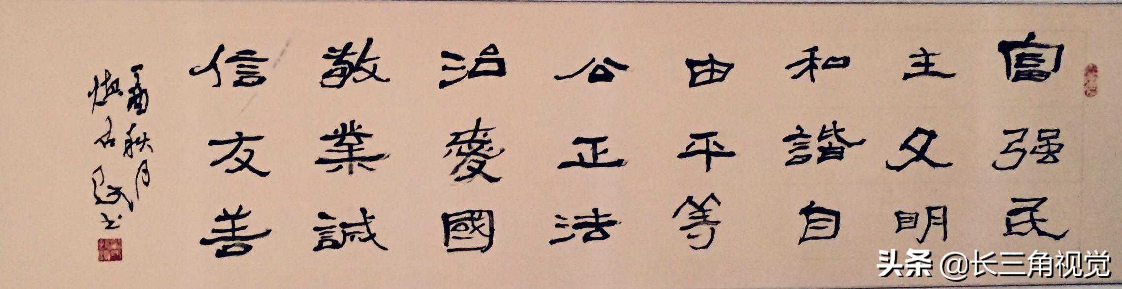 八十年代初,开始写第一块招牌是“爱山商店”,挂在湖州城里闹市的红旗路上,得到诸多百姓的好评。随着经济的发展,湖州商业茂盛,写招牌的店铺多了起来,知道我会写榜书,纷纷上门求字,“湖州石油经营公司”“慕韩斋”“长春药店”“万寿春”“周生记”“大通桥”“湖州电视台经营公司”“湖州银泰商业大厦”“湖州市体育运动学校”“栖贤禅寺”“华亭宾馆”“湖州湖师附小”“湖州市全民健身中心”“吴兴区实验小学”“吴兴区第一中学”“湖州交通技师学院”等等写了些多,被同道称为榜书高人,但我很惭愧,不敢当,笔墨生涯坎坷深远,略有心得,也只是天道酬勤而已!