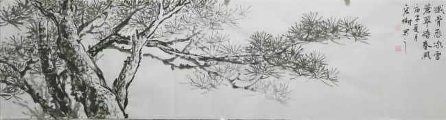 《铁骨苍翠图》宏树檀职业画家