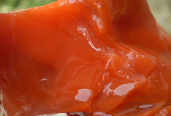 还有一种比较特别的南红原石是水冲料,也叫南红水籽料。这种南红原石成因是因为其从山体或岩壁上掉落,进过水流的冲刷后进入河水,长时间的冲刷形成的。很有特色,有着非常漂亮干净的皮纹。但水籽料南红的颜色较浅,整体油脂感极强的少见。