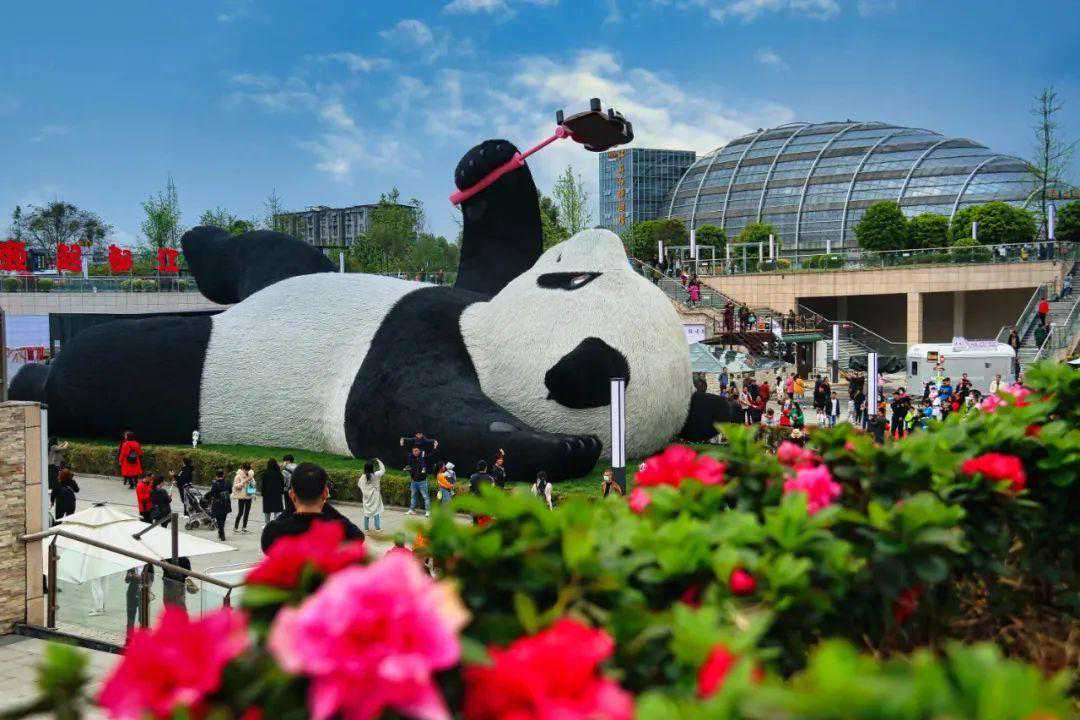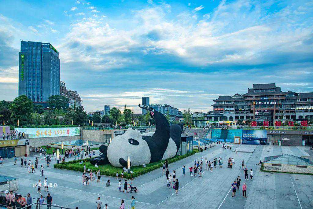 这里有一只“XXXXXXL型·自带萌点·天天拍照·安逸巴适”的自拍大熊猫,作为都江堰的地标性建筑“熊”,它每天躺在仰天窝广场上,等着无数前来都江堰耍的小伙伴们拍一张合照,可以说是非常尽职尽责的一只“打工熊”了。据说迪丽热巴、杨迪都和它拍过照,怎么着也得来“咔嚓”一张吧。