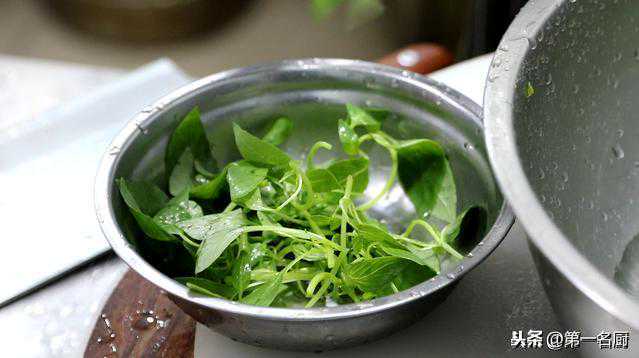 洗净的荆芥一小把,择去上面的叶子放入盆中备用,这个也是用来配色的,南方的朋友可能买不到这种青菜,也可以不用。