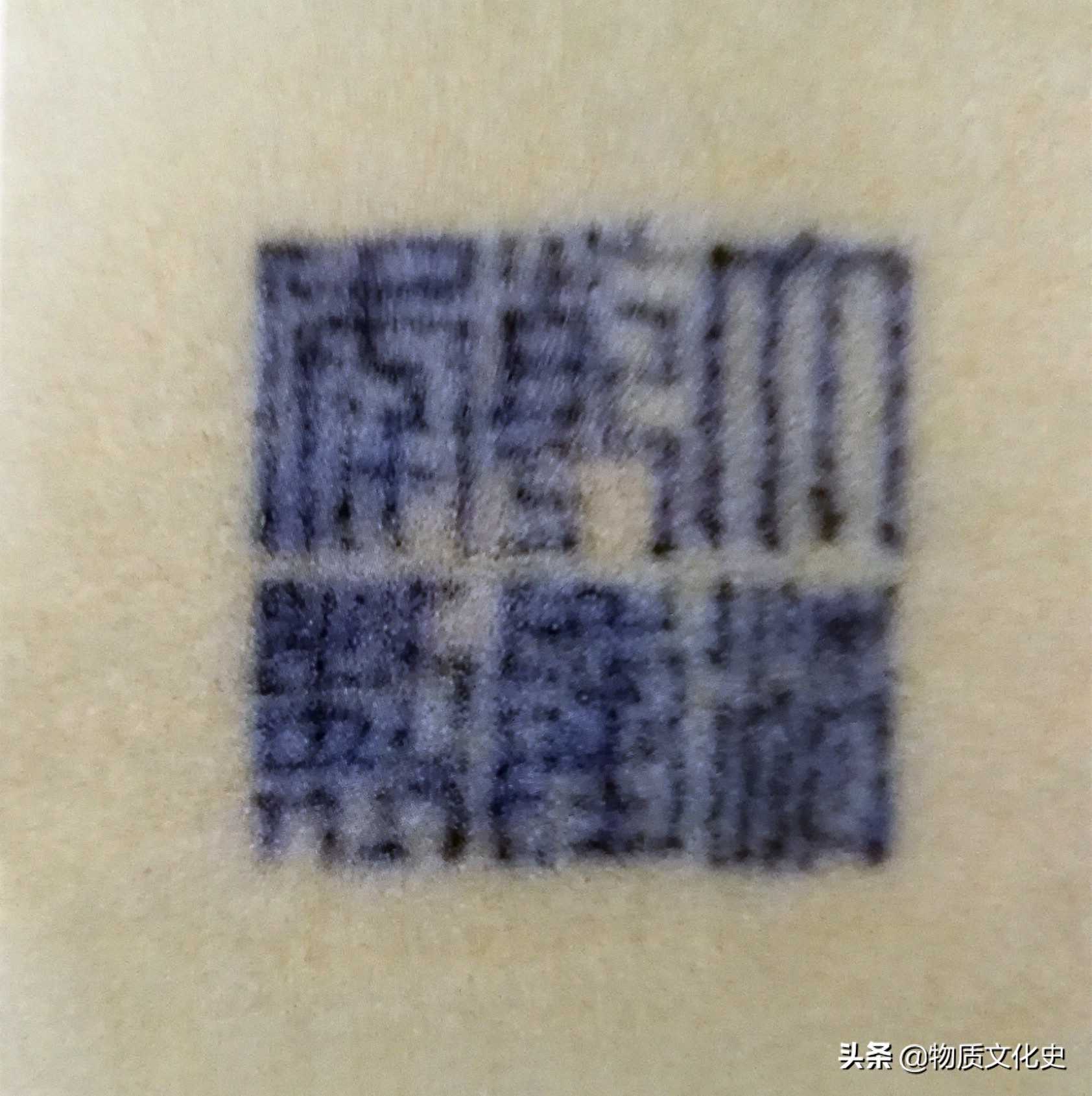 (接上图)足内有青花双圈“大明宣德年制”六字双行楷书款。明代仿宋官窑器一般只注重仿宋器的釉色而不太注重仿其造型,故少有乱真之作,例如此盘便是除釉色貌似宋汝窑器外,其造型和款识都显示出宣德官窑瓷器的风格。