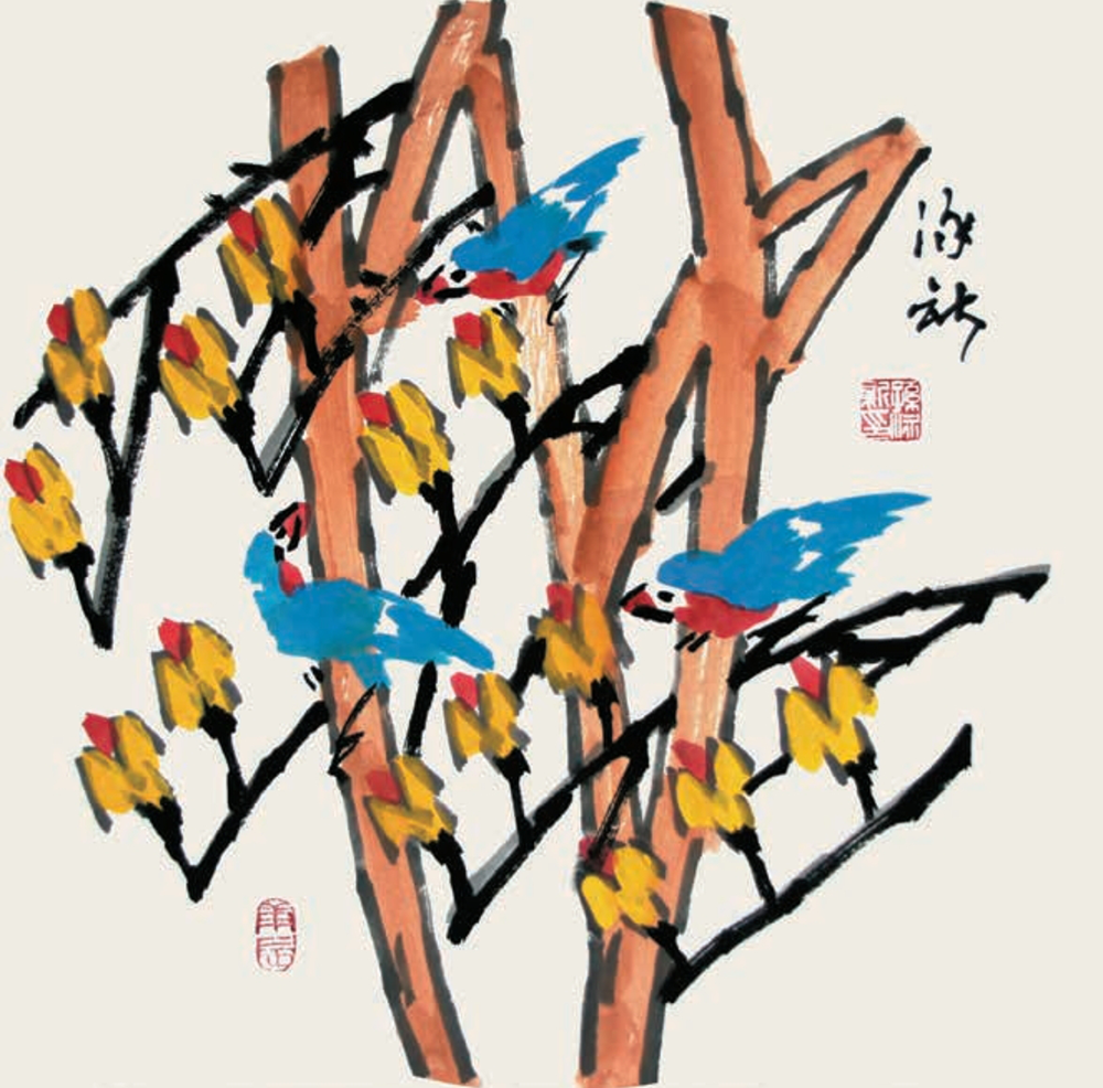 孙泳新的书画作品“返璞归真”取法自然、心物合一、多以方笔、苍笔、拖锋之变,夸张变形,求神不求形,另辟蹊径,把传统的花鸟画推向新时代的顶峰。