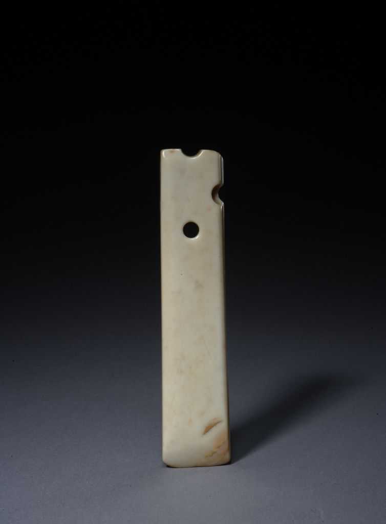 此类玉礼器少数是专门制作的,多数为日常所用玉礼器,有的或经过改制,大多器形简单,平素无纹,与其它系统玉礼器有明显的区别。葬玉系统还应包括一类特殊的玉礼器,即缀于棺椁之上的并非简单装饰目的的玉饰件。