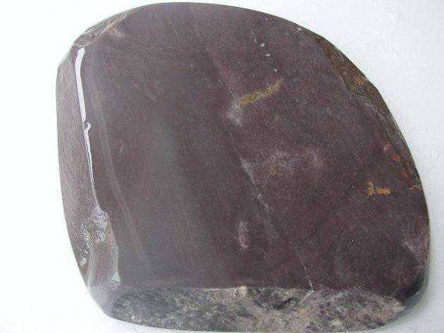紫云坑紫云坑在歙县岔口镇周家村,主要出产紫云石。与绝大多数歙石青黛色不同,石呈紫红色或猪肝色,有的带有青绿色斑纹,石质较粗,但发墨快。石品主要有紫云、玉斑。