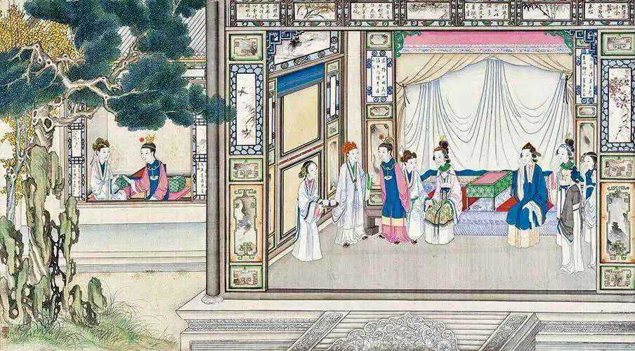 过掼了“白玉为堂金作马”的奢侈豪华日子的荣国府宁国府,一应什物用玉如常:元妃省亲赐予的“金玉如意各一柄”当是来自皇室的大内器物,“碧月早已捧过一个大荷叶式的翡翠盘子”里养着各色折枝菊花呈与贾母,探春房中“右边洋漆架上悬着一个白玉比目磬”,袭人手中的“那个缠丝白玛瑙碟子”等等不一而足。贾蔷从外头买来的稀罕雀儿,都“是个玉顶儿,还会衔旗串戏。”,真正名副其实的金玉之家。