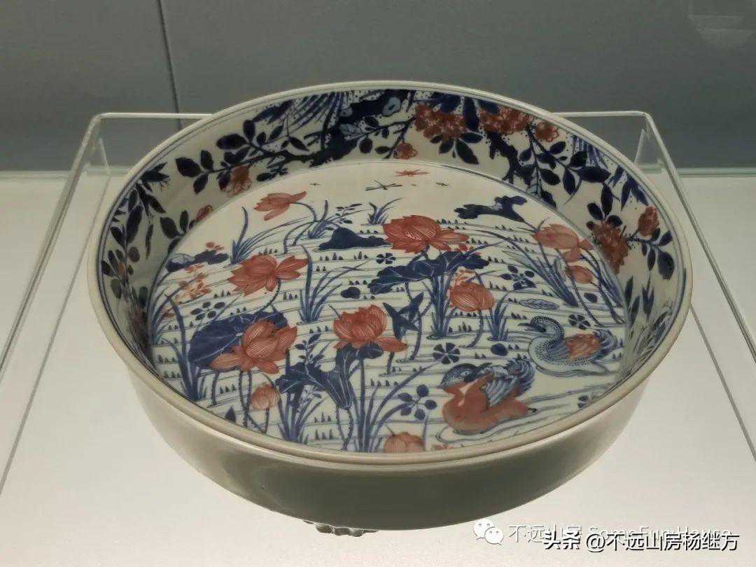 上海博物馆藏康熙青花釉里红莲池鸳鸯纹三足洗