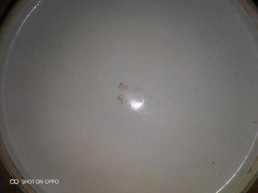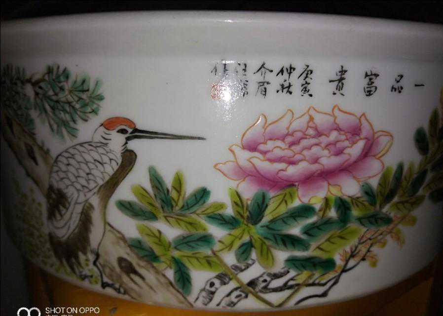 器底直径28cm、高8cm,款识:“一品富贵”、“庚寅仲秋介眉汪藩作”、“福”,底款“官窑内造”。