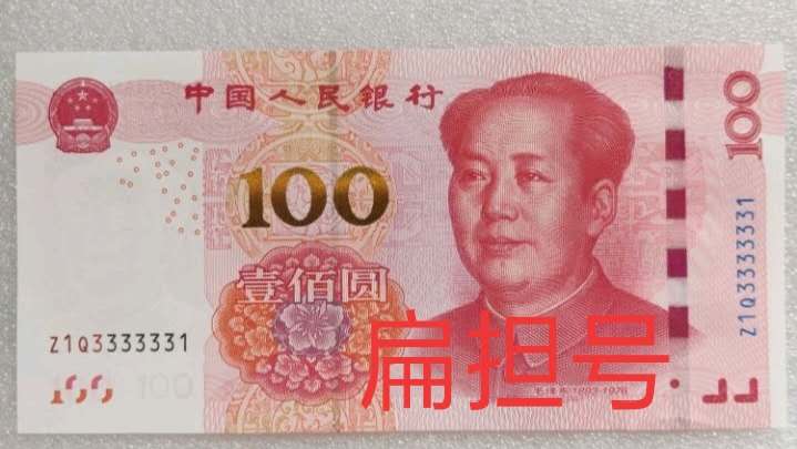 人民币扁担号就是指人民币的八位数字编码最前面的数字和最后面的一个数字是一样的,中间的六位数字编码又是一样的。比如八位数字编码为13333331,90000009等,两头数字一样,中间数字又一样,看起来像扁担,所以叫扁担号。这样的扁担看起来非常漂亮,数字排列也很有规律,收藏价值也比较高。全新单张价格在200-400元左右,如果是一张05版50元数字编码为90000009的扁担号,它的收藏价值大概在400元左右。面值小的扁担号价格就稍微便宜点。