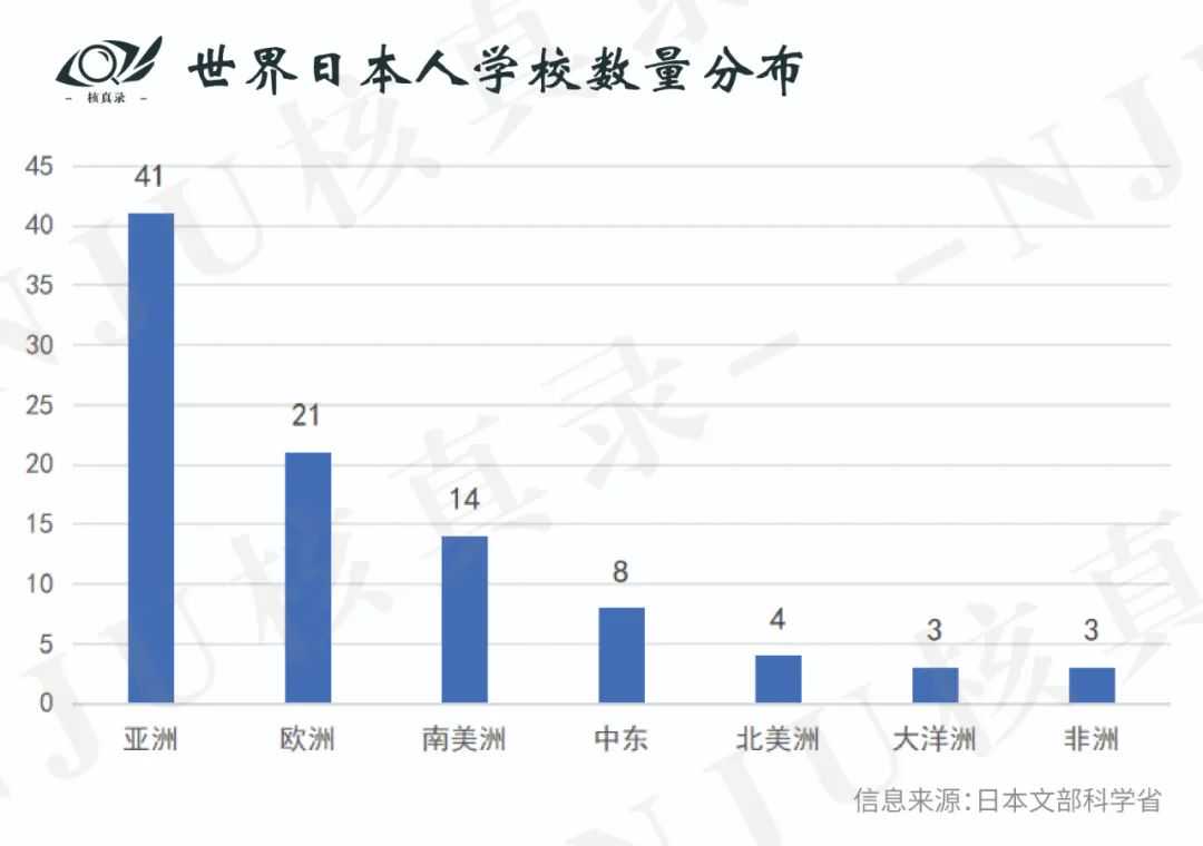 根据日本文部科学省的名单现实,截止到2023年4月15日,日本一共在国外建立了94所日本人学校,其中更是包揽了49个国家。