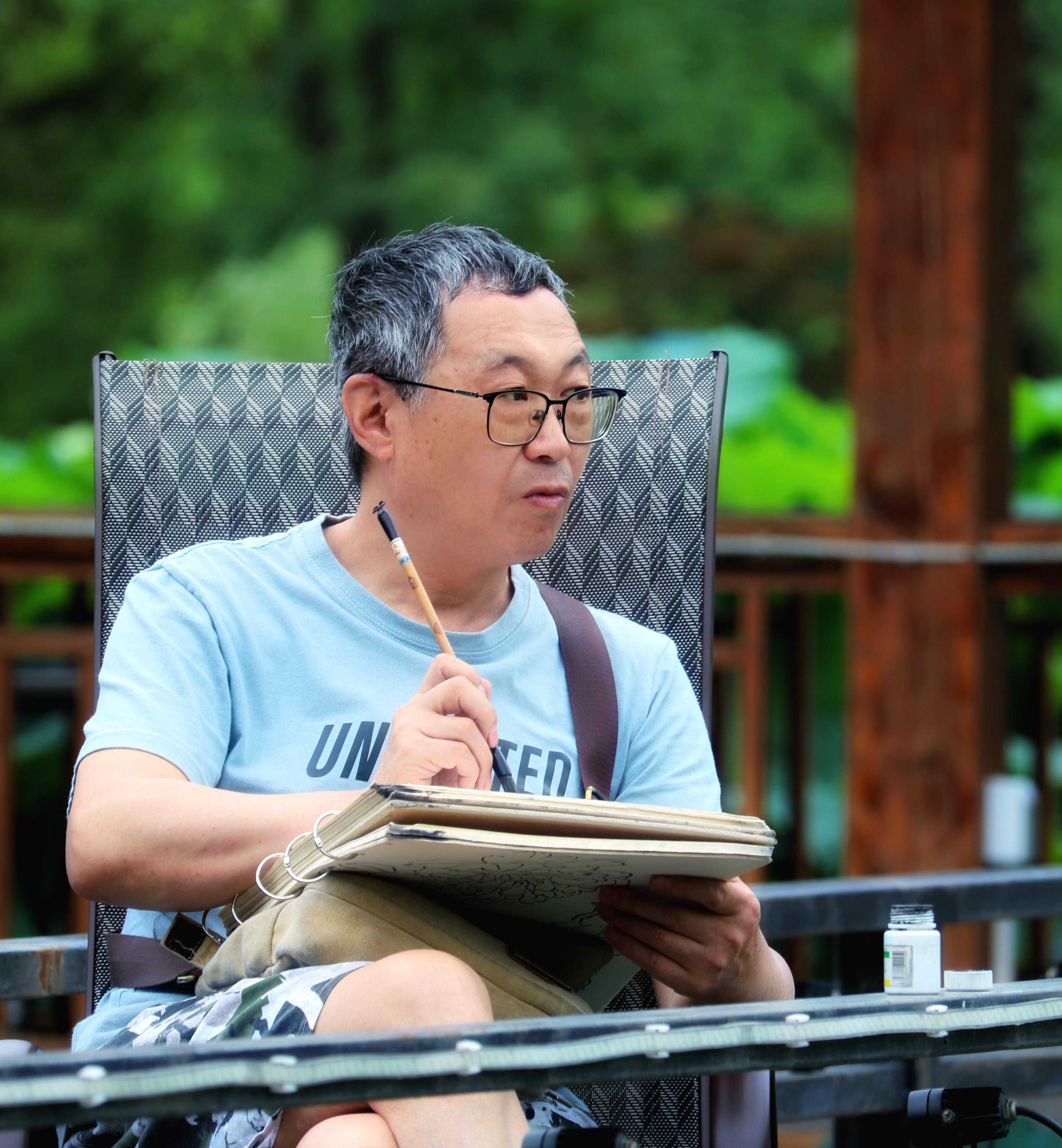 李知骏,77岁,中国人民解放军外语学院毕业,退休。自幼喜好书画,曾师从成都著名画家陳亮清先生。