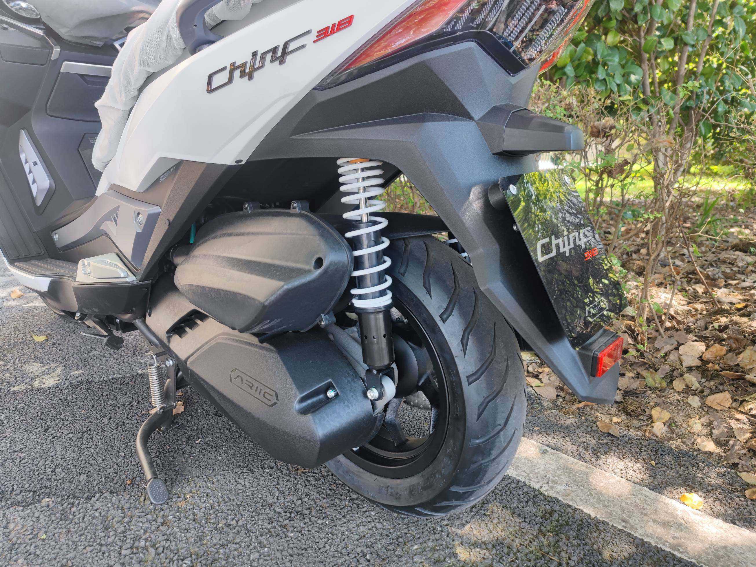 铝合金后视镜、铝合金后脚踏、铝合金大撑和边撑,在用料上还是花了不少心思的。这边值得一提的是,力刻318的大撑很轻,一般女孩子力气小的都能一下子就撑起。边撑和后脚踏也有静音橡胶垫的设计,细节上个人觉得在国产车中比较用心。