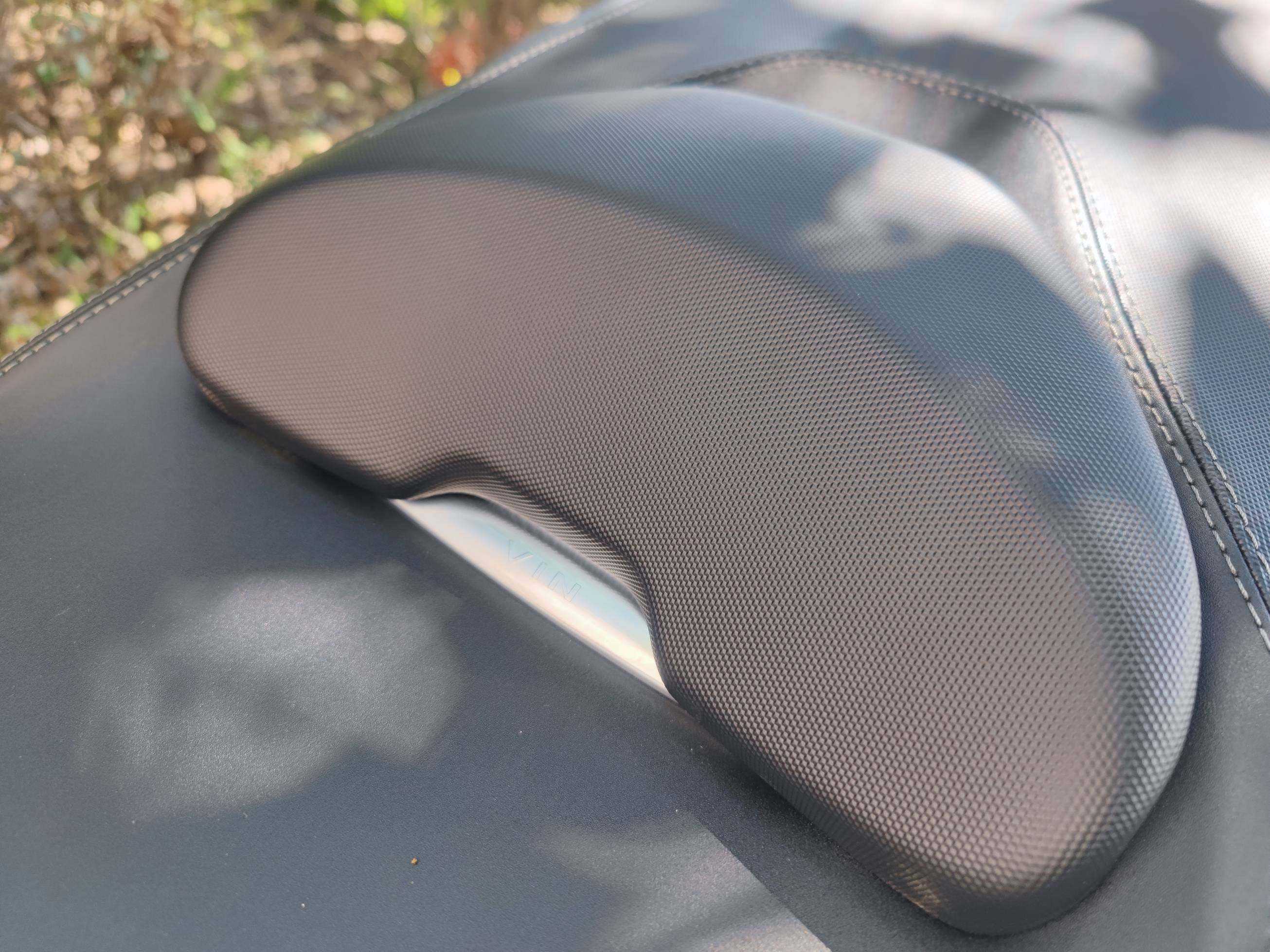 最后说说这个座椅吧,座椅的舒适度个人觉得一般,支撑性不错但是有些偏硬,而这个腰拖在长途骑行中还是会有一点作用,不过能够再靠前一垫,材质更软一点就更完美了,不过整体的座椅缝线也较为精致。马桶空间在同级中还算不错,能够放下一顶全盔和半盔,这个真的很实用。坐垫也有液压杆设计,分为两档开合度,还有LED照明灯。在细节的处理上力刻真的有用心在做产品,这是这台车给我最直观的感受。