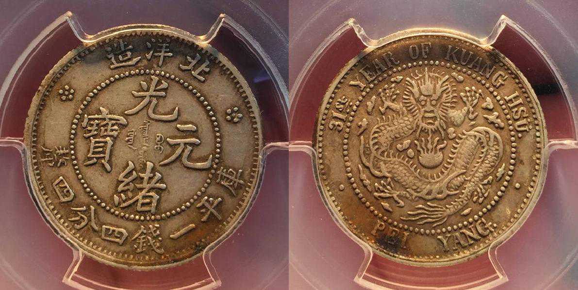 据考证,光绪一点星由北洋造币厂代铸,数量不多。目前pcgs45分已经达到15,000元左右。