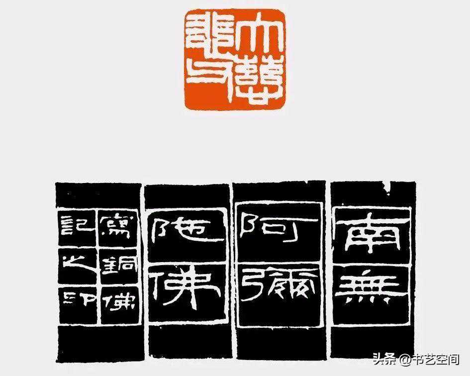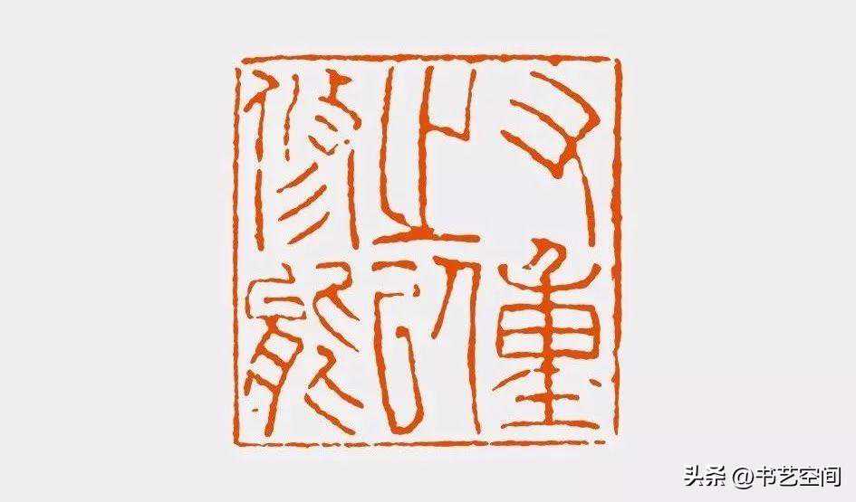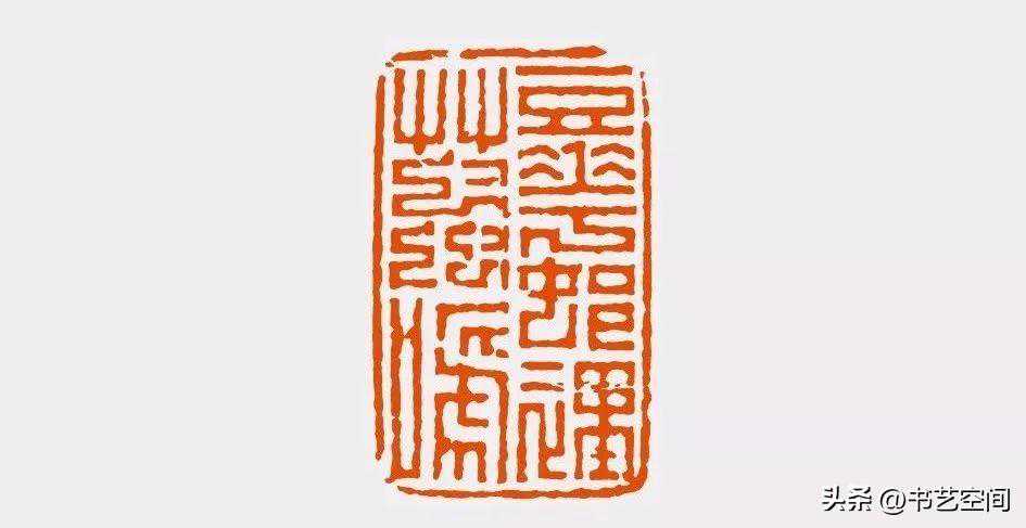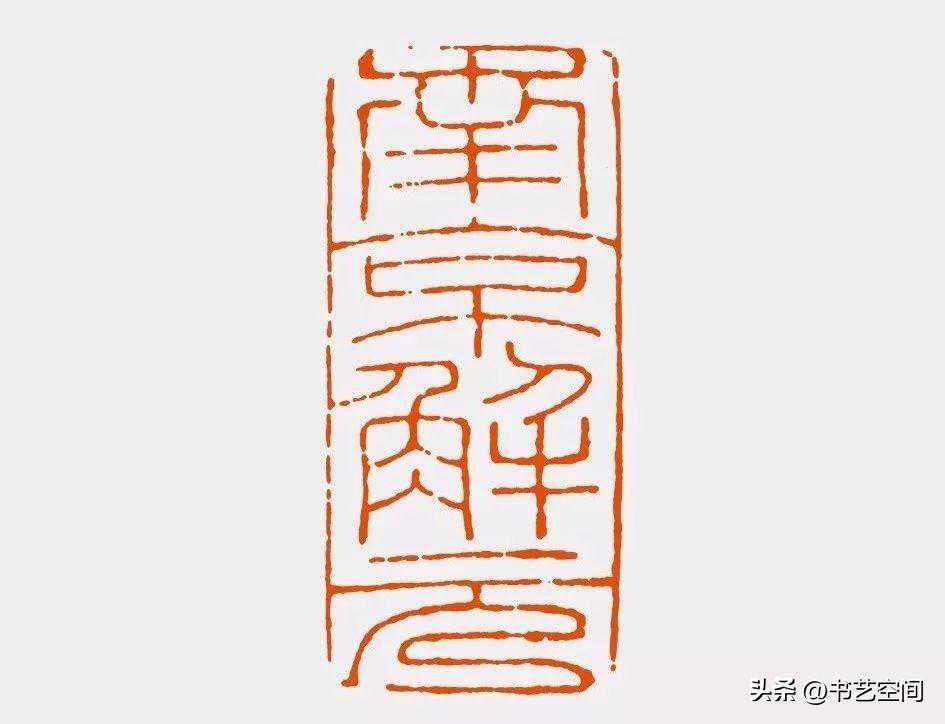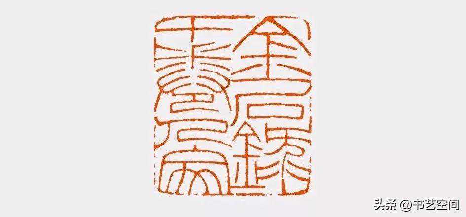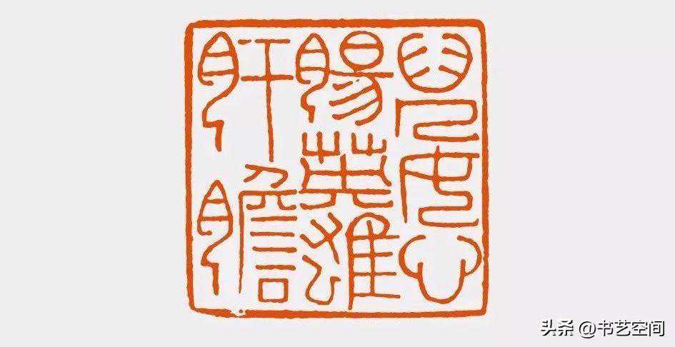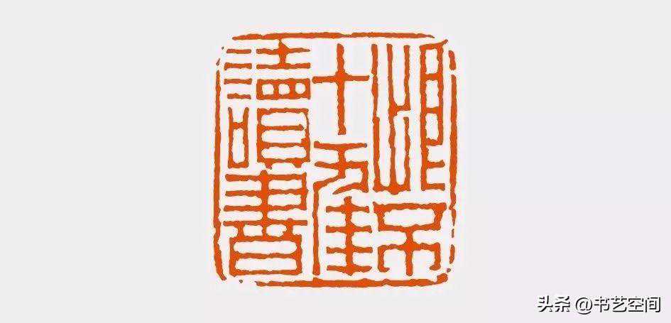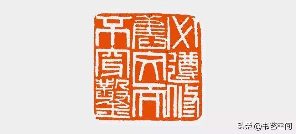 吳讓之不僅朱文純宗小篆,與鄧石如同一機杼在白文印上,也力求表現出小篆婀娜的體態,當方塊印面使他感到表現不能如意時,他往往採用把篆字壓扁或拉長的方法,以求不失小篆圓轉之意。這種追求應該被看成是鄧石如小篆入印追求的延續,也只有到了這時,作為鄧派宗旨的尚圓尚小篆的藝術特徵,才在朱文白文印中都得到了充分的體現,形成了完整的體系。