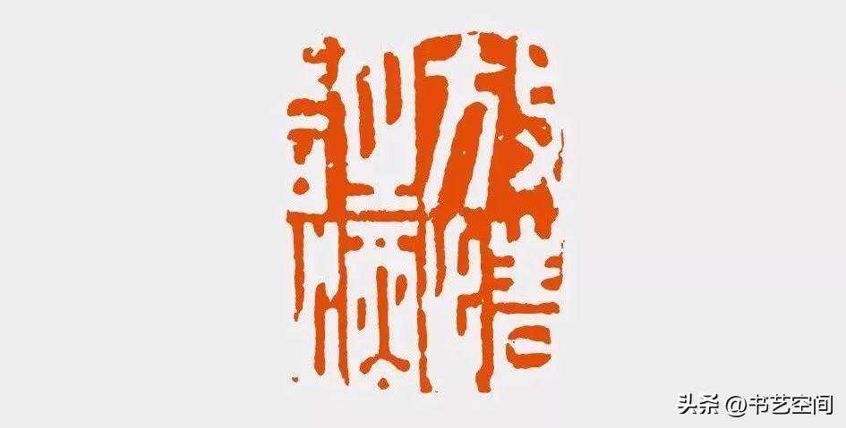 刻印章,不把篆書線條刻挺拔、刻直,行么?不把篆書結構佈置得四平八穩,均勻整饬,行么?線條的頭尾不刻得圓轉流暢,而大力強調提按頓挫、粗細變化,行么?這些問題,在印章歷史上被認為是常識問題,無論是在古璽漢印、文彭、何震、丁敬、鄧琰,乃至趙之謙,對於篆刻要均勻整飭,一概認為是必須如此,不能違反的,然而,在吳昌碩的鐵筆之下,不僅可以違反,還違反得那麼決絕,那麼義無反顧,這真是篆刻史上驚天動地的大變化,它足以令文、何、丁、鄧們瞠目結舌。