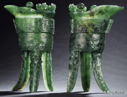 清乾隆碧玉雕仿古龙凤纹爵杯(一对)