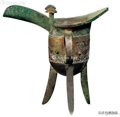青铜器爵实际上就是相当于现今的酒壶。其形状为“圆腹前有倾酒用的流,后有尾,旁有把手。当属最早期的酒杯。