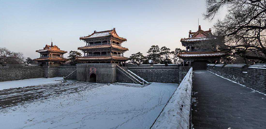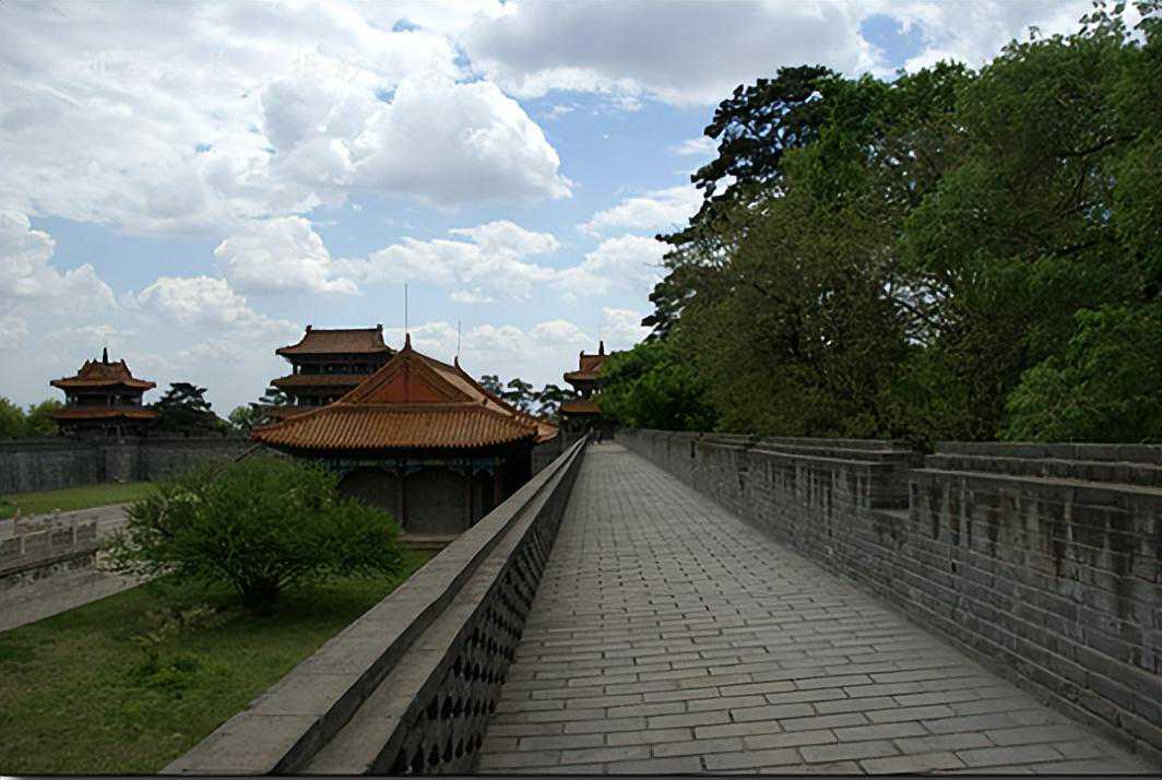 方城四角各有一座二层重檐歇山式角楼。方城与外围的风水墙形成了内城外的格局,城堡全部采用砖石砌筑而成,将隆恩殿竺主体建筑围在中央,起到了防御作用。