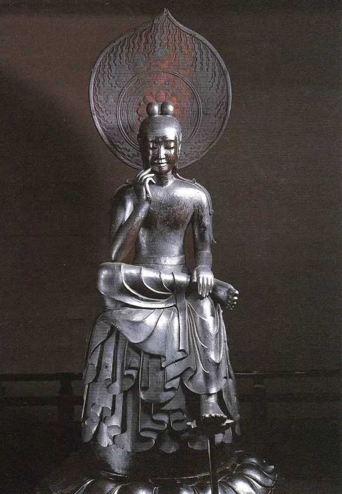 日本国宝级佛像弥勒菩萨半跏思维像飞鸟时代寄木造楠木表面镀金奈良中宫寺供奉