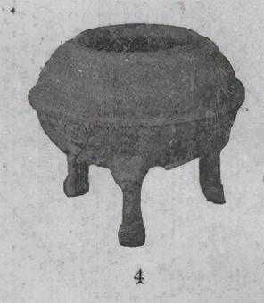 陶鼎(墓14)5件。可分三式;I式;2件。盖上有三个扁形兽头钮,腹部凸敕一周,系灰陶,满身漆绘,已剥落。Ⅱ式;2件。耳外敞,扁腹,兽面足,盖上有三个圭形钮(图十一,2)。