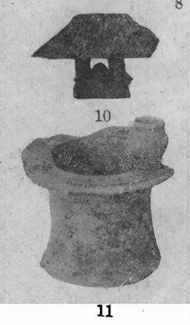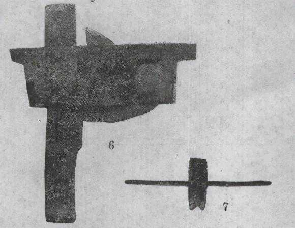 铜滑轮(墓15)1件。圆形,圆周有凸槽,中穿轴,轴两端断面为方形,中间为圆形,轮可以活动。轴长10,轮直径3厘米(图十一,7)。