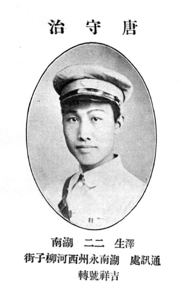 唐守治湖南永州人,黄埔军校第五期工兵队,1904年生,别号:泽生,籍贯:湖南永州,部别:黄埔军校第五期工兵队,其他无记录,入校通信地址:湖南永州西河柳子街吉祥号转。
