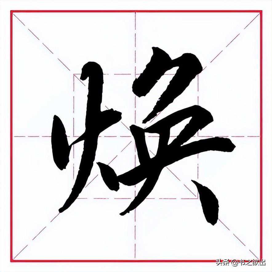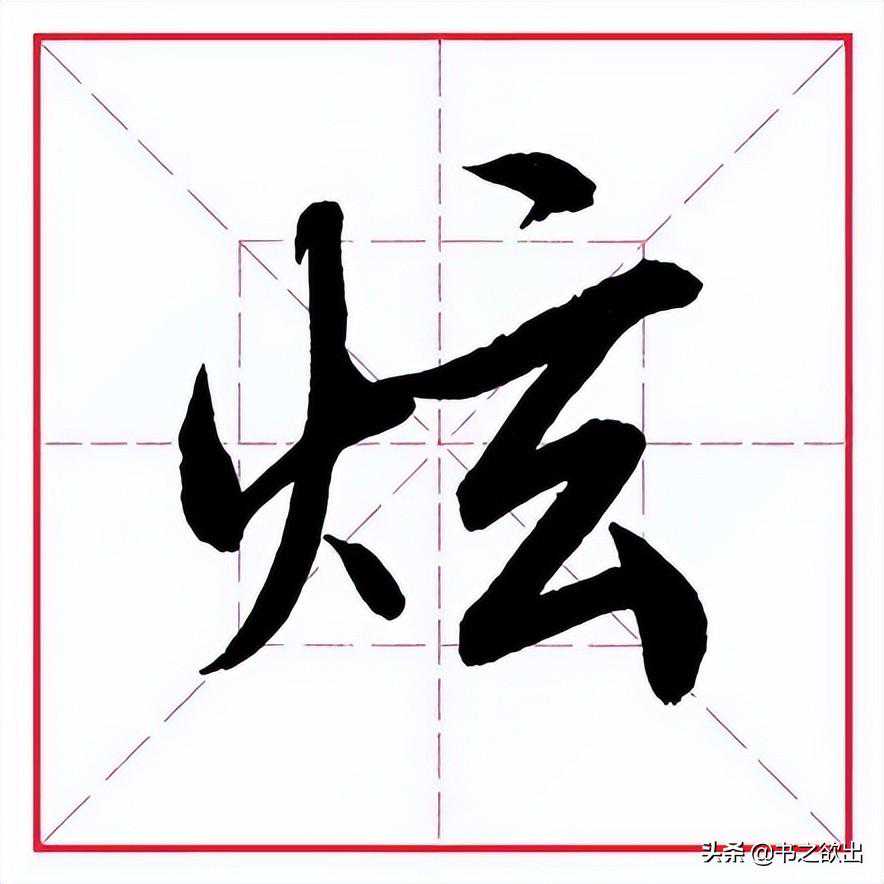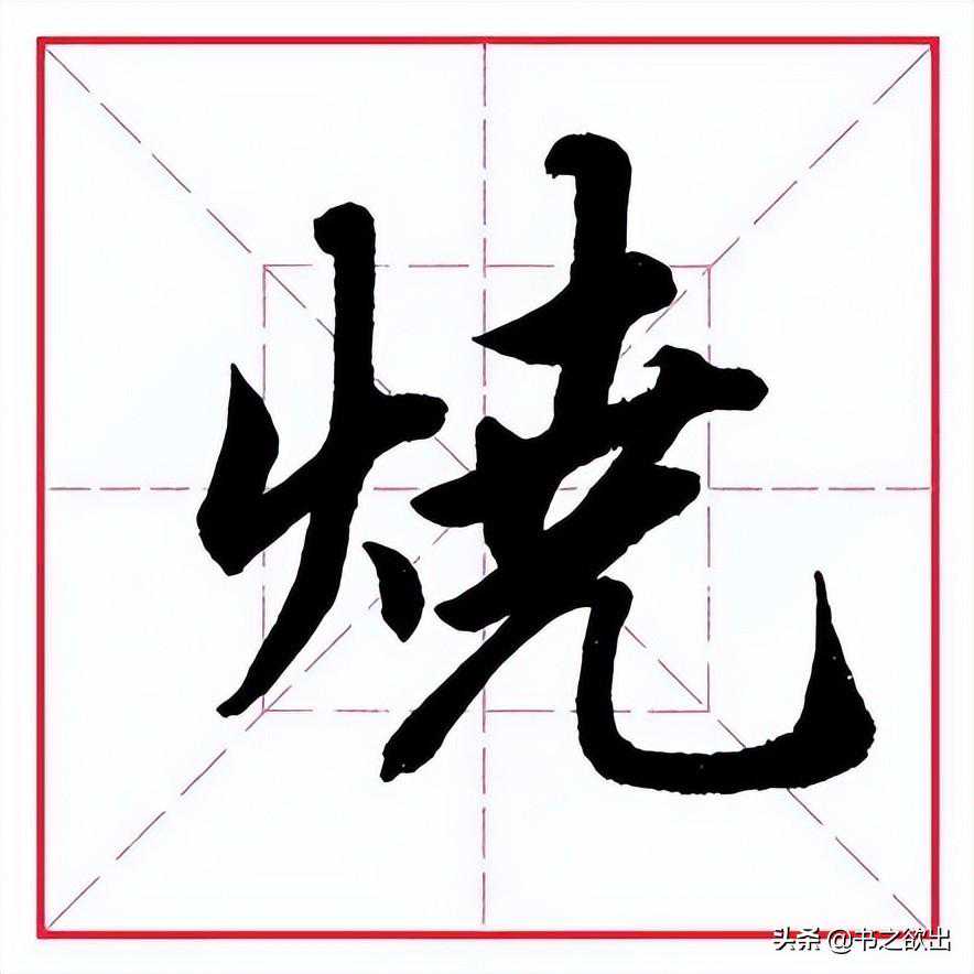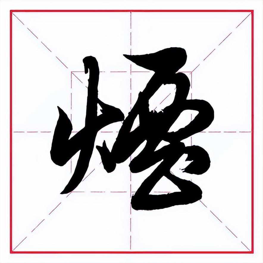 “火”字作为偏旁居字左时整体形窄,点笔收敛,捺笔简化为点,以让右部,竖撇出锋切忌过度向左;居下时不宜写高,左右开张以力托上部。此外,因行书书写的流畅性,“火”部的写法也具多样化(具体见后面字例),撇与捺可连写为一笔,更具草意,如下图: