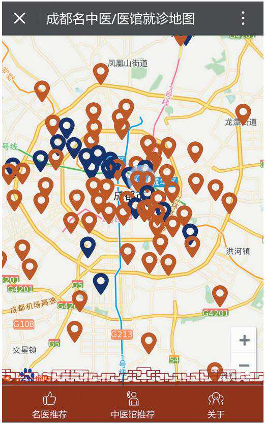 昨日,成都市卫计委推出首份“成都市名中医/中医馆寻诊地图”,运用互联网手段,“一图”解除市民在中医就诊中的难题。据悉,寻诊地图包含主城区几十家中医馆信息,覆盖百余位省市名中医,是成都率先在全国开展的“中医创新服务”。