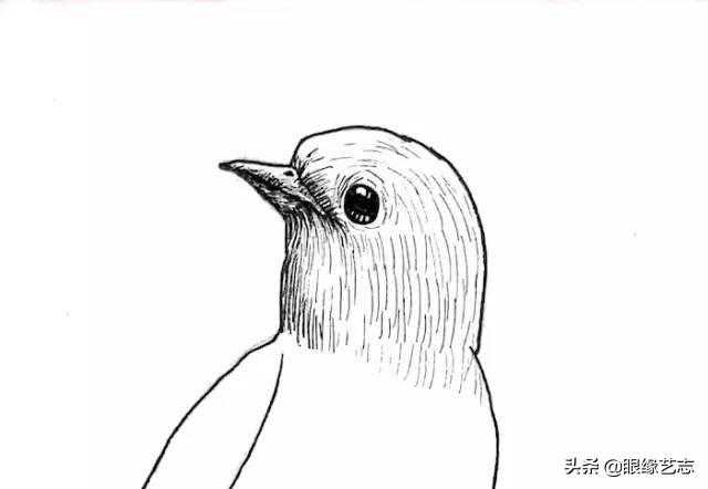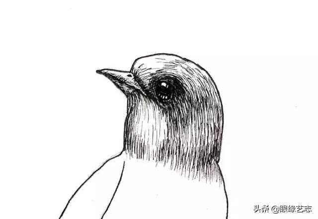 6.头部:羽毛都是分两次排线,第一次整体排线,要短线条排线,显得有层次,注意眼睛周围的羽毛走向。