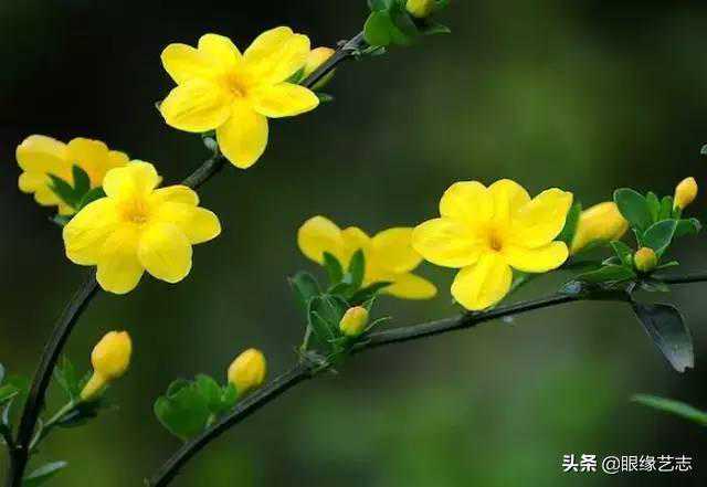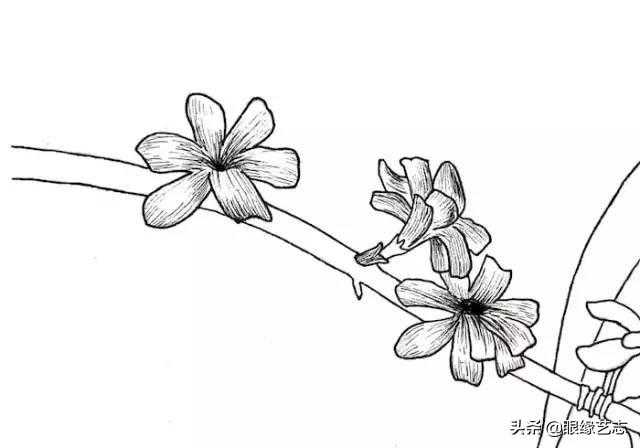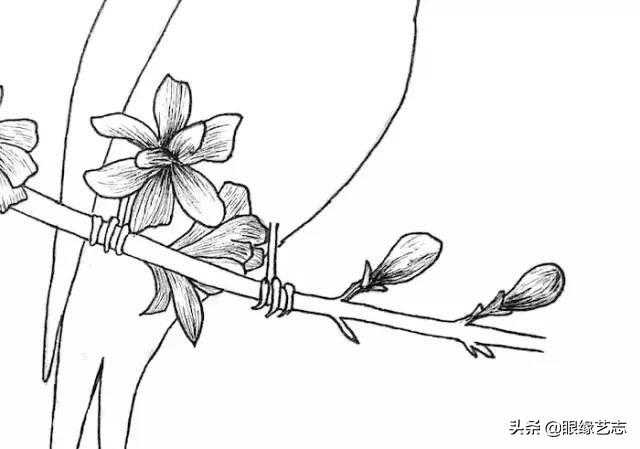 4.树枝:迎春花的树枝有个特点,它不是圆的,而是有棱角的,明暗两面明显,要区分开。