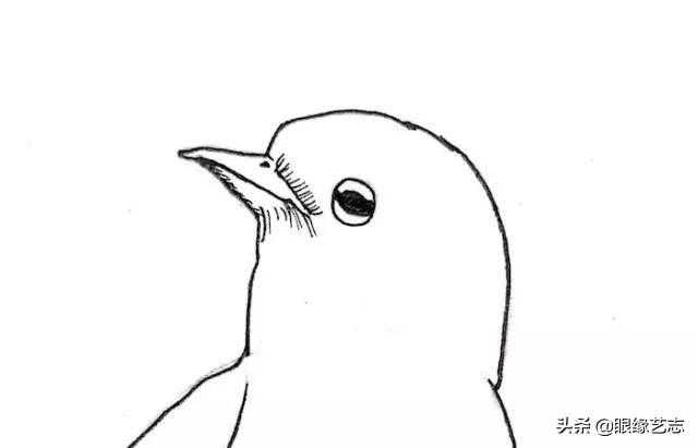 5.嘴眼:先在喙的边缘画一些短的绒毛,眼睛上下留白,然后添加更多绒毛,涂黑一部分留白,留下几处白点,这是眼珠的反光。