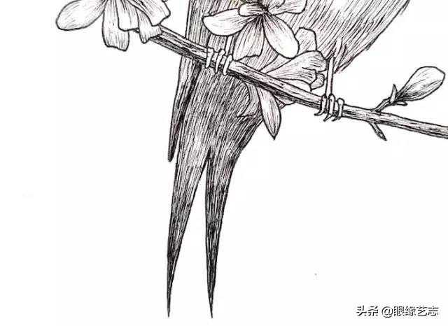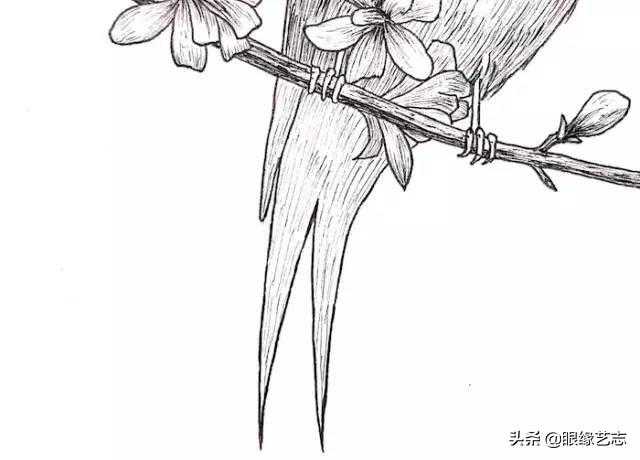 8.尾部:尾部排线比较简单,燕子尾部是黑色的,所以排线要密集一些。