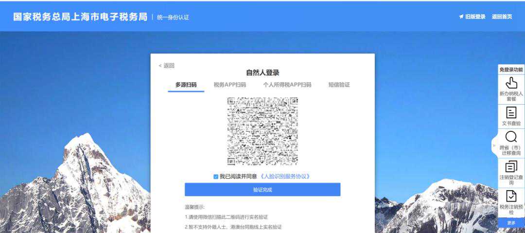 通过选择扫码人脸识别、税务APP扫码、个人所得税APP扫码、短信验证码中任一方式进行身份验证。