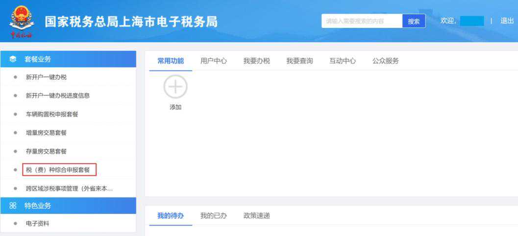登录后,通过【套餐业务】——【税(费)种综合申报套餐】模块进入。