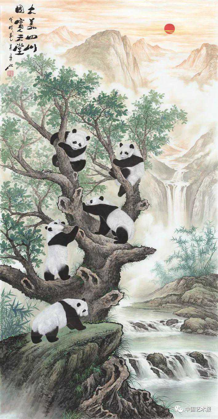 吴长江《大美四川国宝天堂》240cm×120cm2018年