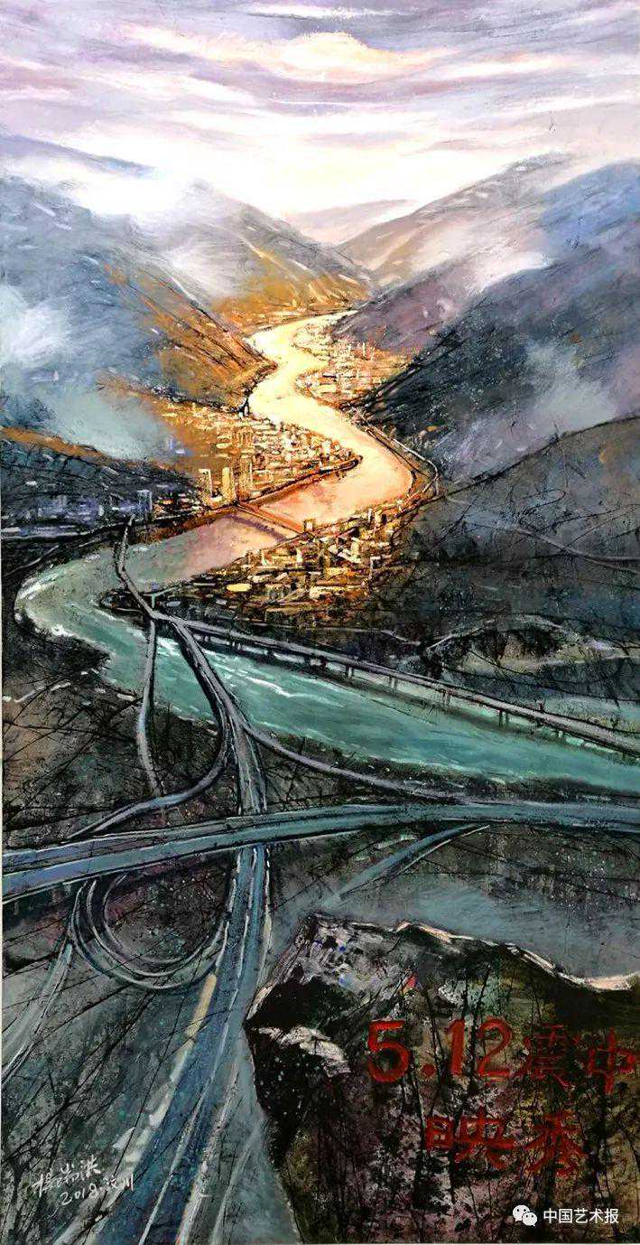 杨瑞洪《汶川·2018》布面油画200cm×100cm2018年
